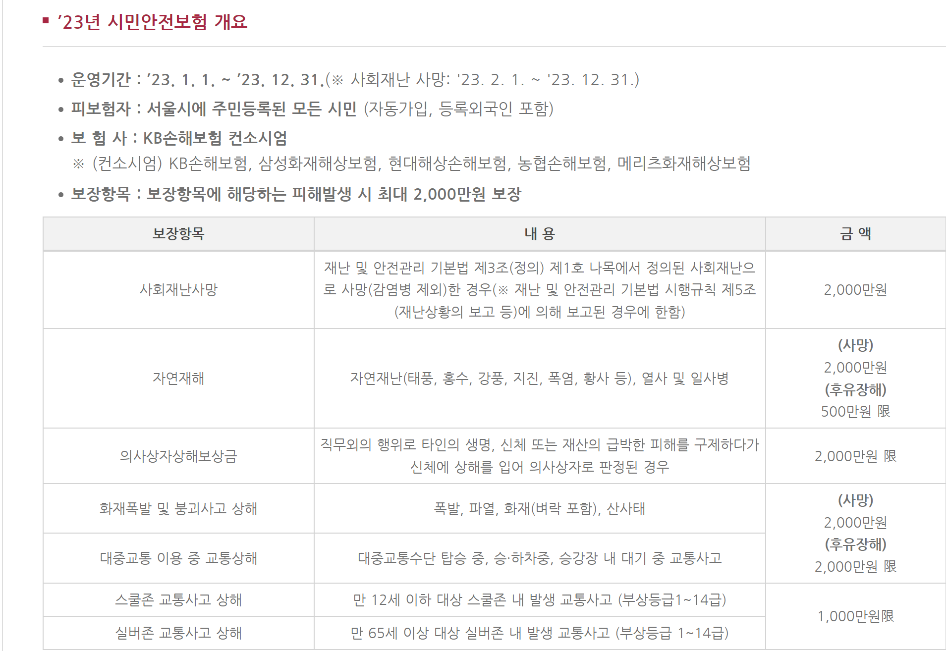 재난. 사고로 인한 시. 도민의 생명, 신체 피해를 보상하고자 지자체가 자율적으로 보험사, 공제회와 가입 계약한 보장제도입니다.