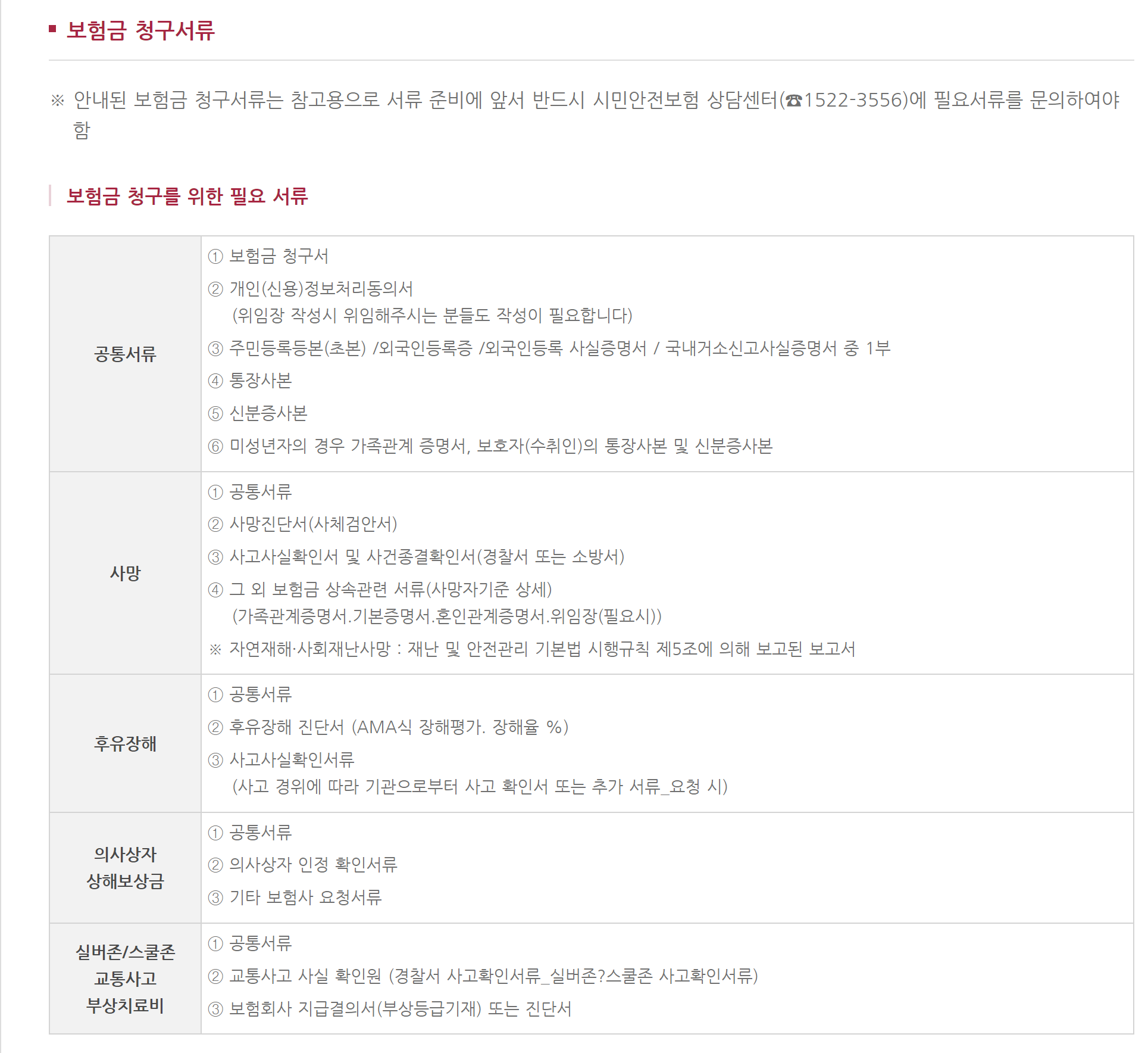 3. 사고 방생시 먼저 시민안전보험 상담센터(1522-3556)에 문의하여 필요서류 확인