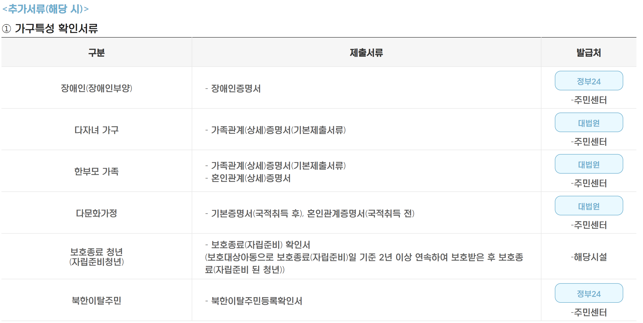 ※ 아래 항목 중에 해당되시는 분이 있으시면, 추가 서류를 준비해주셔야 합니다.